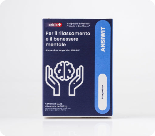 ANSIWIT contiene KSM-66® [Ashwagandha (Withania somnifera (L.) Dunal) radice estratto secco tit. al 5% in withanolidi]; L-teanina; agente di rivestimento: idrossi-propil-metilcellulosa (involucro della capsula); Giuggiola (Ziziphus jujuba Mill.) semi estratto secco tit. al 2% in saponine triterpeniche; Magnolia (Magnolia officinalis Rehder & Wilson) corteccia estratto secco tit. al 50% magnololo; agente di carica: cellulosa; agente antiagglomerante: sali di magnesio degli acidi grassi; piridossina cloridrato (Vitamina B6); Lavanda (Lavandula angustifolia Mill.) olio essenziale.